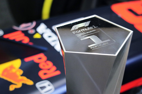 マシンの右隣にはアゼルバイジャンの優勝トロフィー、左隣にはフェッラーリ(『Ferrari』と綴っても『フェラーリ』ではない)のスパークリングワインのボトルが置かれていました。